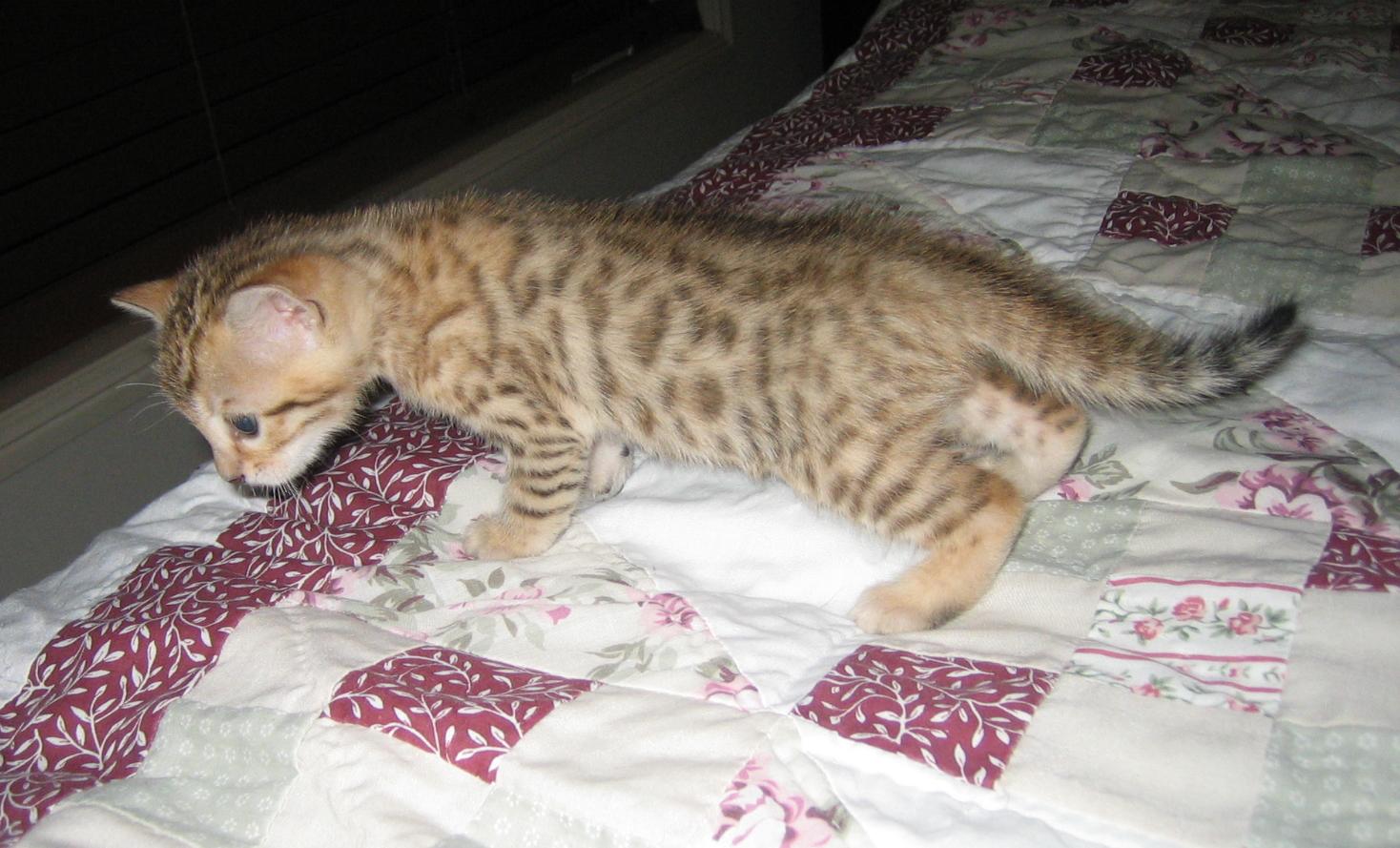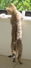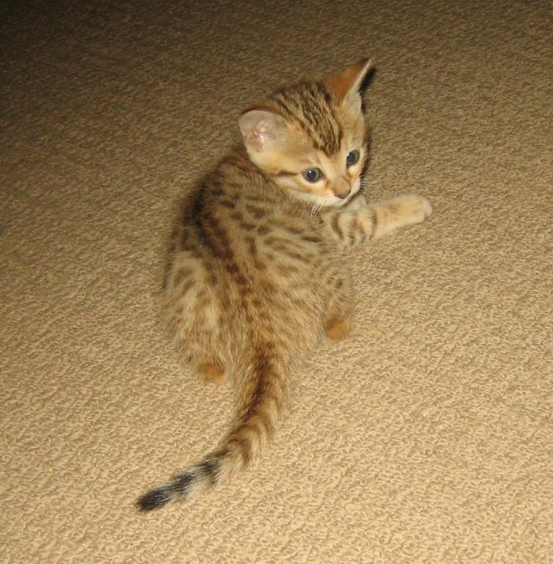 Click on above names for pedigrees. Kitten born 16 January, 2008 - 1 girl Amber - 13 weeks - 12th April 2008 'Amber Peridot' - 9 weeks of age Our kitten pricing is very reasonable and is as follows: Pet: from $500.00 Breeder: from $1200.00 If you are interested in any of our kittens please contact us by email at auscan@auscanbengals.com or by telephone on (07) 4633 4446 |