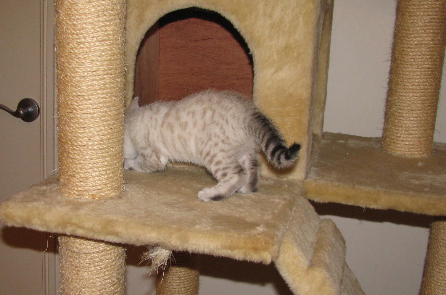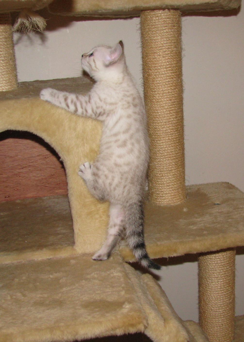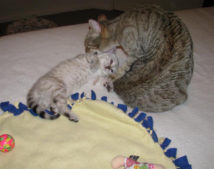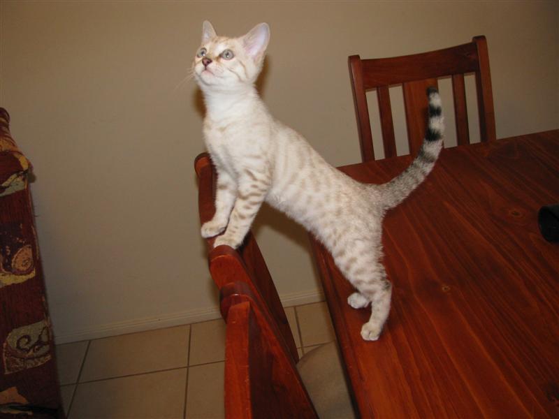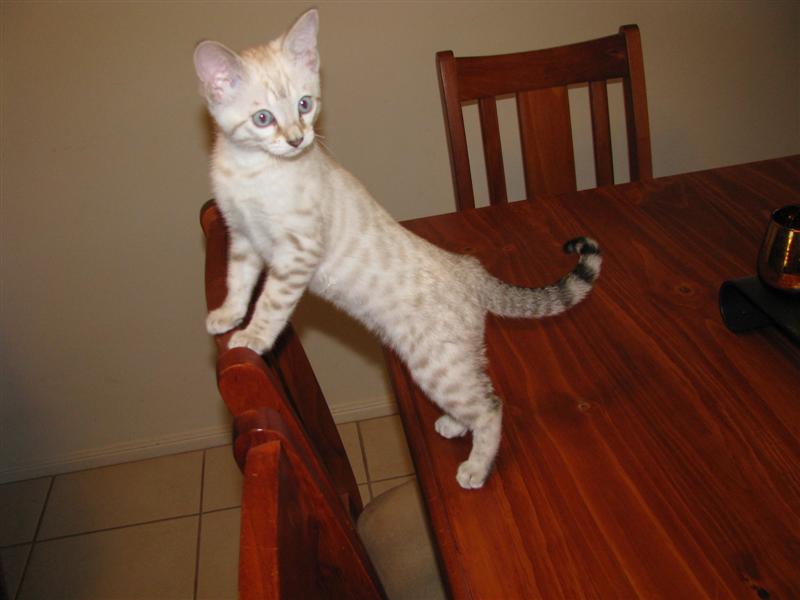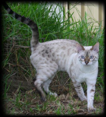 Auscan Holly Blue & Runamok Arktik Bear A repeat mating of Holly and Bear will happen in the near future. Just one kitten was born 11 February, 2009 ..... oh but what a beauty she is:) Ghost has been sold as a breeder. Ghost at 12 Weeks (above) Ghost at 6 1/2 weeks (above) Auscan Antique Pearl known as 'Ghost' at 5 weeks of age (above) Ghost is a Seal Lynx Point spotted Bengal. She is a gorgeous young female with possible high show/breeder potential. As you would expect she is still under evaluation.
